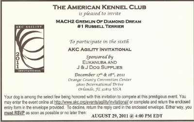 And that’s not all..Here is Gremlin’s invitation to the 2011 AKC/Eukanuba Invitation: